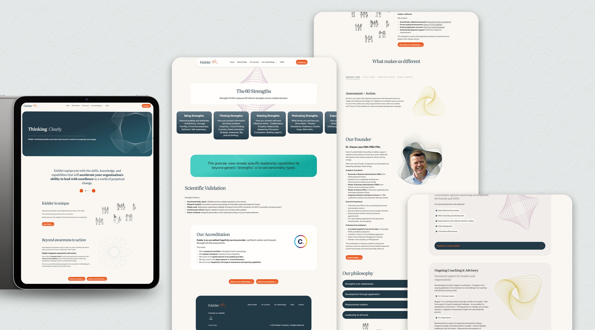 A comprehensive brand identity and website for Dr. Kieran Lees of Kielder Consulting.